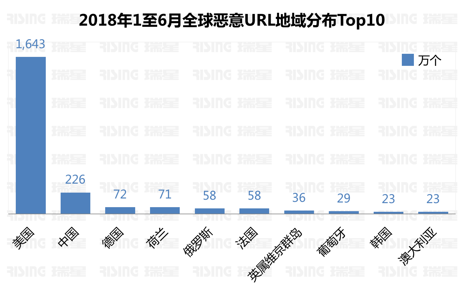2018年上半年瑞星“云平安”系统正在全球范畴内共截获恶意网址(URL)总量4,785万个,此中挂马网坐2,900万个,诈骗网坐1,885万个。美国恶意URL总量为1,643万个,位列全球第一,其次是中国226万个,72万个,别离为二、三位。