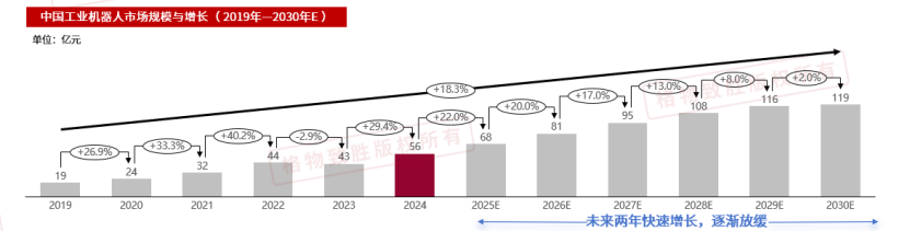 中国是全球最大的工业机械人市场,2024年新安拆工业机械人数量达29。5万台,占全球新安拆量的54%,正在役工业机械人存量冲破200万台,居全球首位。2024年中国工业机械人市场销量为30。2万台,虽然同比下降了4。50%,但中国做为全球最大工业机械人产销市场的地位仍然安定。