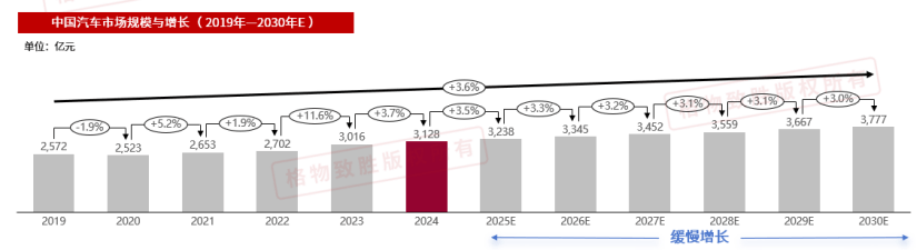 从产量数据看(中国汽车工业协会),2019-2024年中国汽车年产量从2572。1万辆增至3128。2万辆,6年间增加21。6%,2023年冲破3000万辆大关后2024年再立异高,持续16年稳居全球第一。乘联会预测,受益于部县乡市场普及、车辆更新周期缩短等要素,将来总量无望冲击4000万台,市场规模将持续扩大。