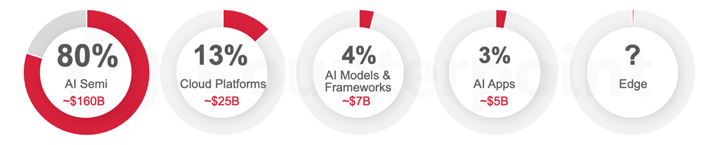Counterpoint Research研究总监Mohit Agarwal暗示:“2024年,AI市场次要由硬件驱动,约80%的间接收入来自用于根本设备和边缘设备的半导体。然而,这种环境正正在改变。”!