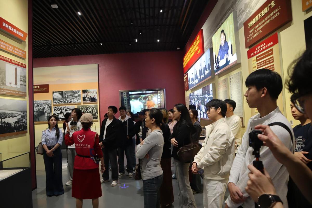 10月28日下战书,师生首坐来到深圳“大潮起珠江”展览馆。展览通过实物陈列、影像材料取数据图表,系统回首广东40余年的成长过程取冲破成绩,同窗们正在各个汗青场景前驻脚思虑,正在时代共识中国度成长脉搏。